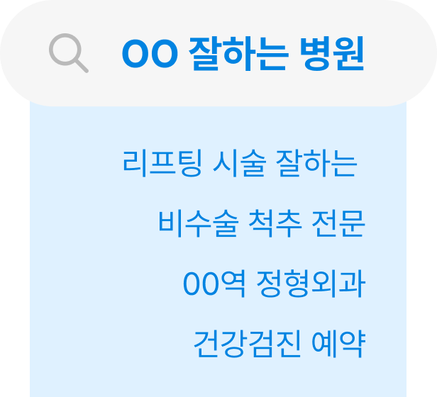 환자는 병원의 정보를 비교합니다.‘검색 최적화 콘텐츠'로 환자가 우리 병원을검색할때 신뢰를 쌓아보세요.